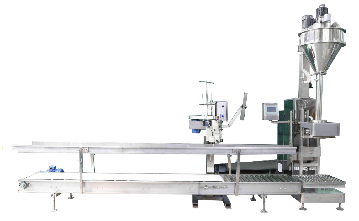 - Can made into semi-packing and palletizing line with conveyors, sewing machine, heat sealer, fall bag conveyor, reshaping conveyor, weight checker, reject conveyor, pallet magazine, stacker.