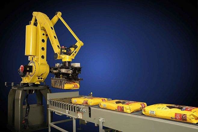 High degree of automation, Manually only need to put empty bags into the automatic empty bag feeder, empty pallets into the pallet magazine, all other processes are automatically completed by the equipments. The specific automation processes is as follows: