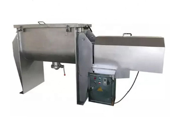 Stainless steel horizontal powder ribbon blender mixer with heating consists of transmission parts, double ribbon agitators and U-shape chamber. It's a multifunctional mixing equipment of stable operation, reliable quality, low noise, long life, easy installation and maintenance.