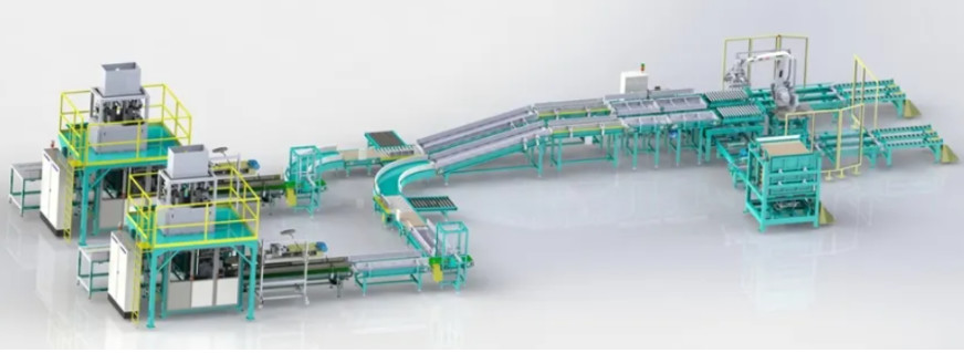 2. 25 kg automatic ( valve type bag ) packing & palletizing line,